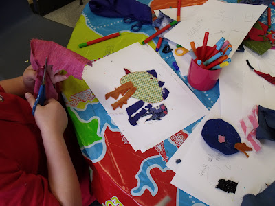 I worked with nearly 90 Children at Wynstream school this March helping them to invent and create their very own unique mixed up creatures from fabric. Culminating in two colourful wall hangings for the school.